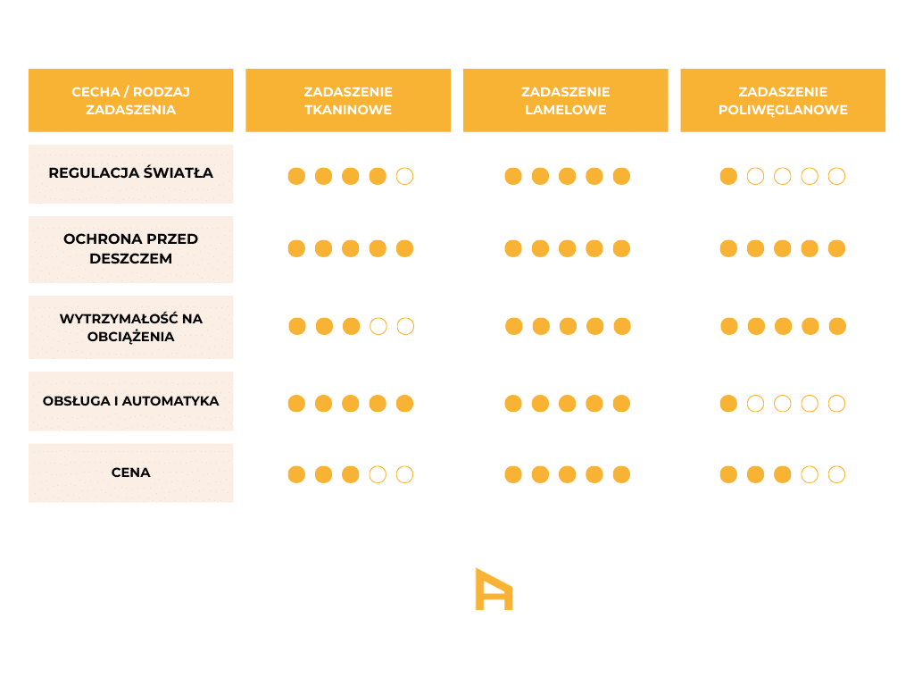 Stałe konstrukcje, takie jak pergole aluminiowe zadaszenia z poliwęglanu lub szkła, zapewniają solidną ochronę i trwałość. W słoneczne dni, aby zapewnić zacienienie tarasu, trzeba doposażyć je w rolety dachowe zip. Są odporne na warunki atmosferyczne i często zwiększają wartość nieruchomości.